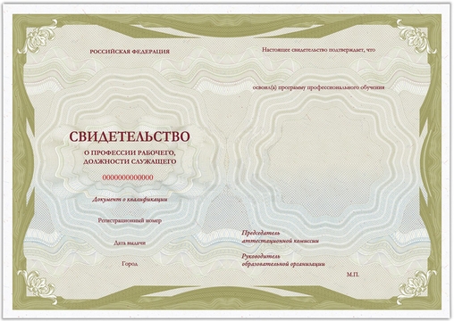 В финале курса "Парикмахерское искусство с нуля" вы получаете Свидетельство о профессиональном обучении государственного образца, которое свидетельствует о получении профессии рабочего должности служащего ПАРИКМАХЕР, с присвоением квалификации.